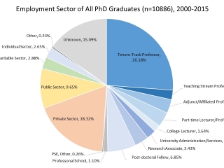 The 10,000 PhDs Project, an initiative of the School of Graduate Studies, used internet searches to determine the current (2016) employment positions of the 10,886 individuals who graduated from the University of Toronto from 2000 to 2015 in all disciplines.